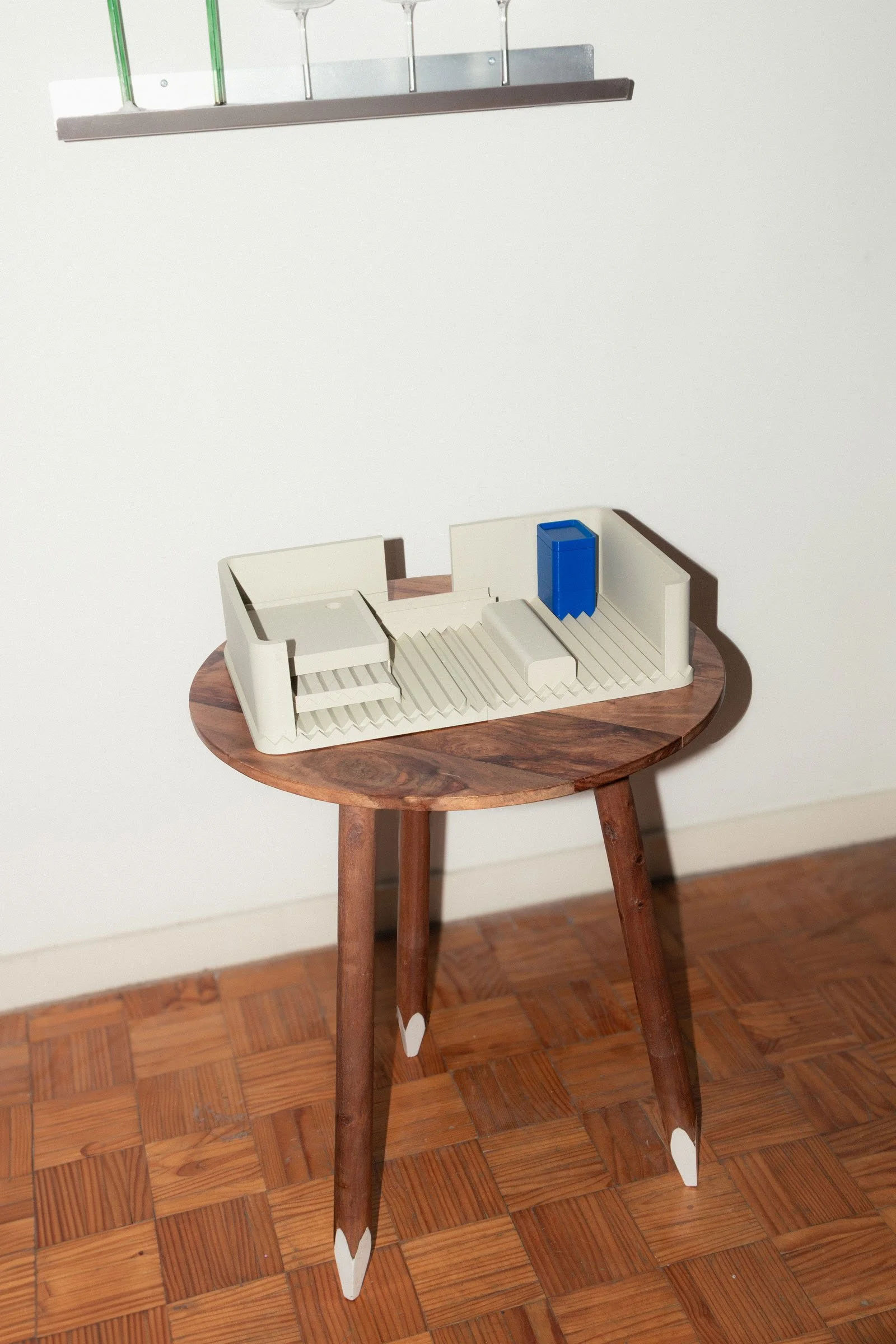 The desk organiser has been designed to successfully exist in two states : stored-away and in-use.